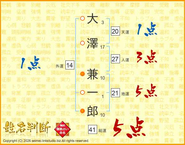 大澤兼一郎さんの総運は41画の5点!