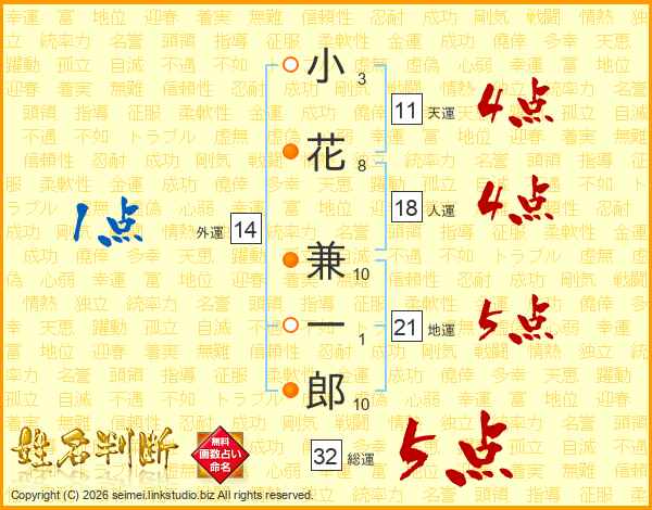 小(3画)花(8画) 兼(10画)一(1画)郎(10画)
