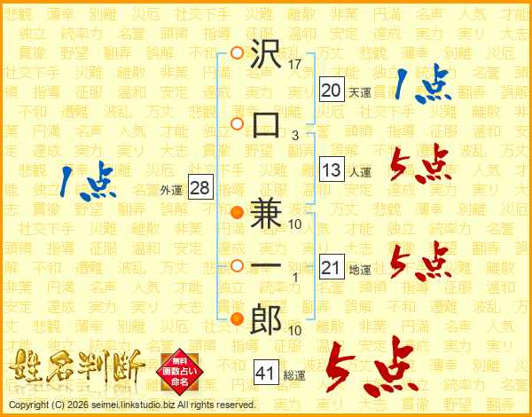 沢口兼一郎さんの総運は41画の5点!