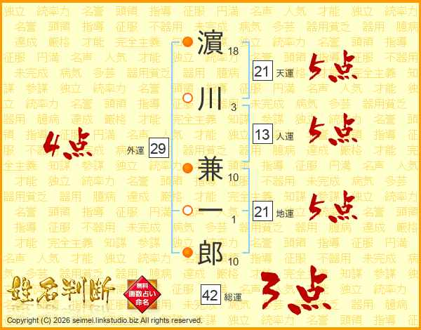 濵川兼一郎さんの天運は21画の5点!