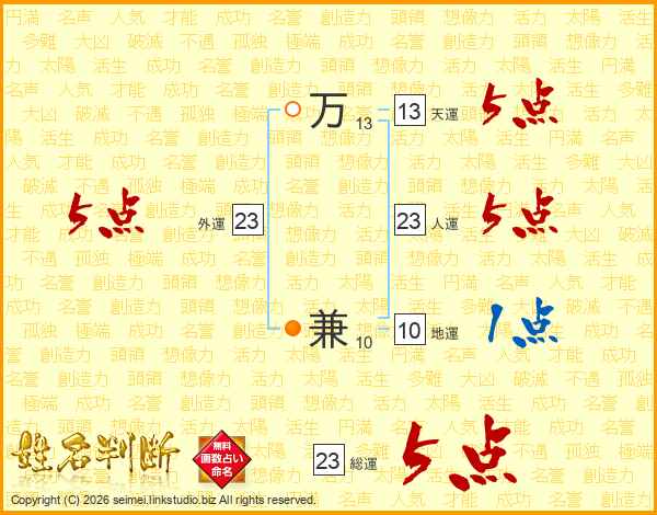 万兼さんの総運は23画の5点!