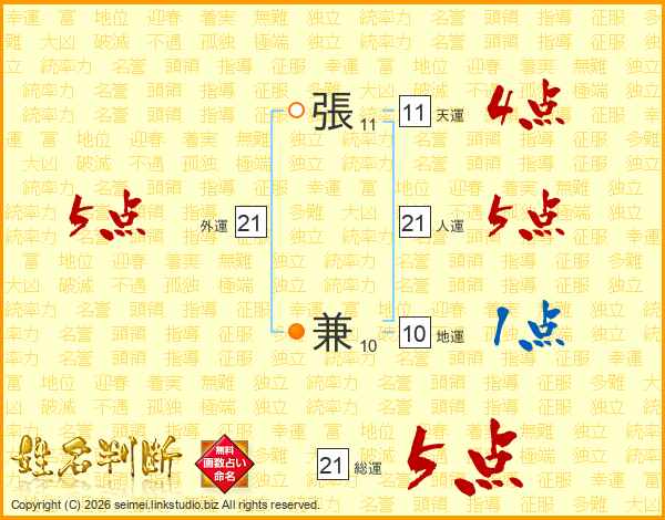 張兼さんの総運は21画の5点!