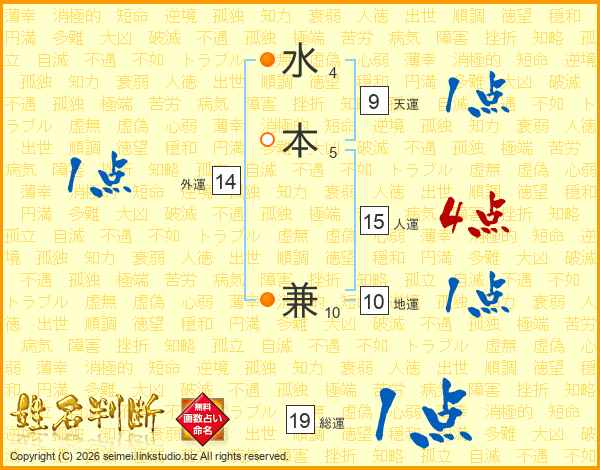 水本兼さんの総運は19画の1点!