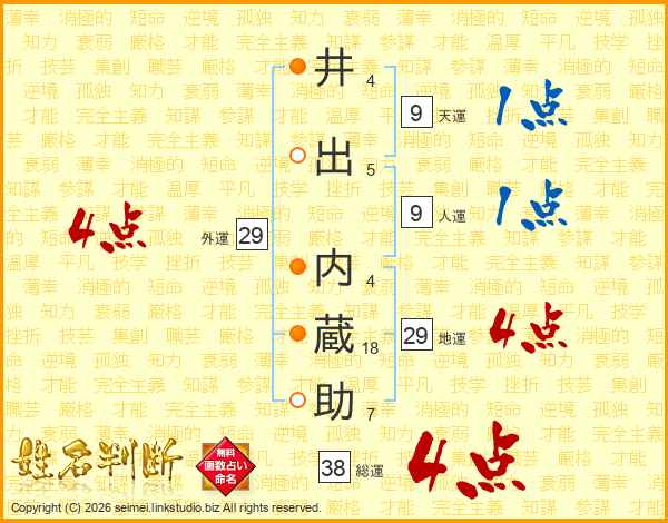 井出内蔵助さんの総運は38画の4点!