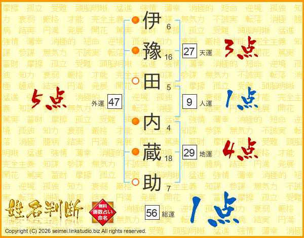 伊豫田内蔵助さんの総運は56画の1点!