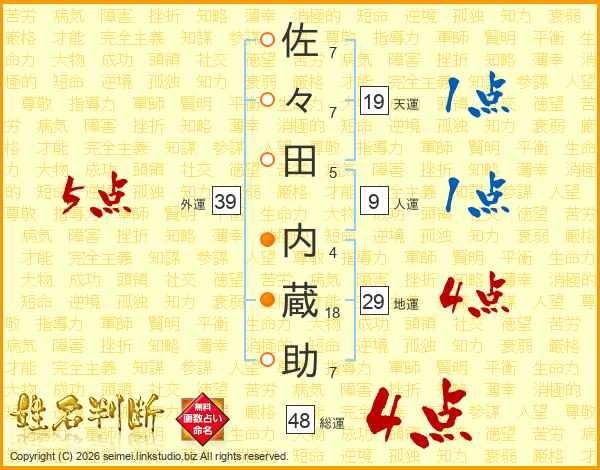 佐々田内蔵助さんの総運は48画の4点!