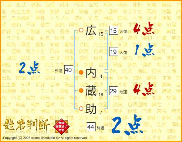 広内蔵助さんの総運は44画の2点!