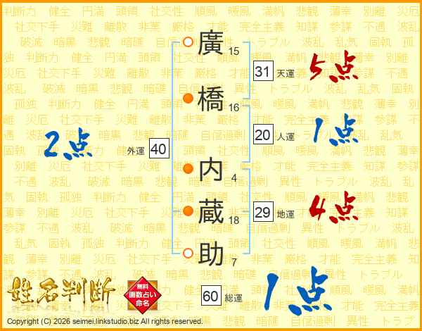 廣橋内蔵助さんの天運は31画の5点!
