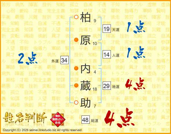 柏(9画)原(10画) 内(4画)蔵(18画)助(7画)