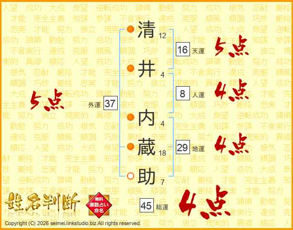 清井内蔵助さんの総運は45画の4点!