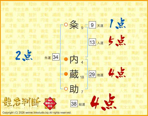 粂内蔵助さんの総運は38画の4点!