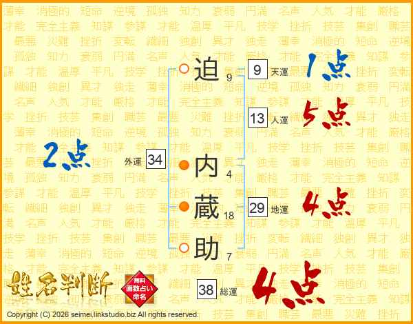 迫(9画) 内(4画)蔵(18画)助(7画)