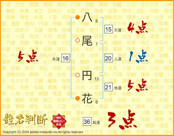八尾円花さんの外運は16画の5点!