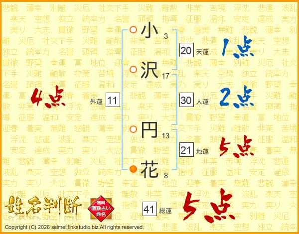 小(3画)沢(17画) 円(13画)花(8画)