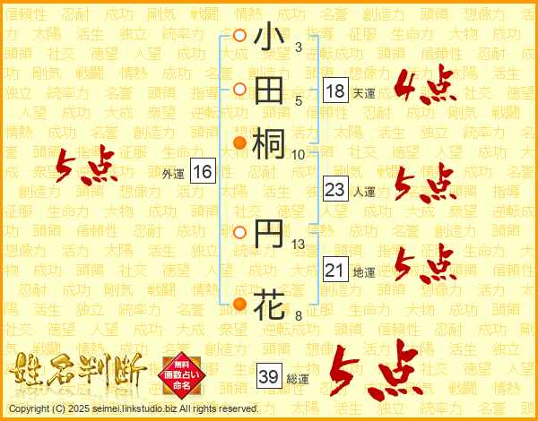 小(3画)田(5画)桐(10画) 円(13画)花(8画)