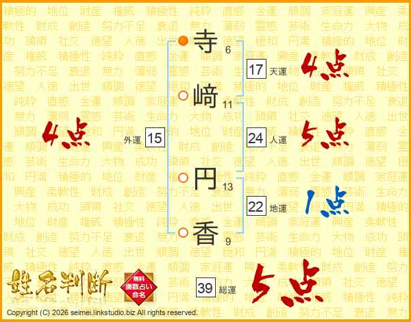 寺(6画)﨑(11画) 円(13画)香(9画)