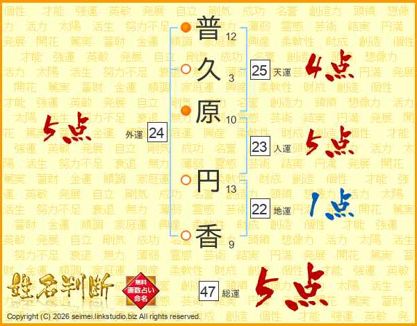 普久原円香さんの総運は47画の5点!