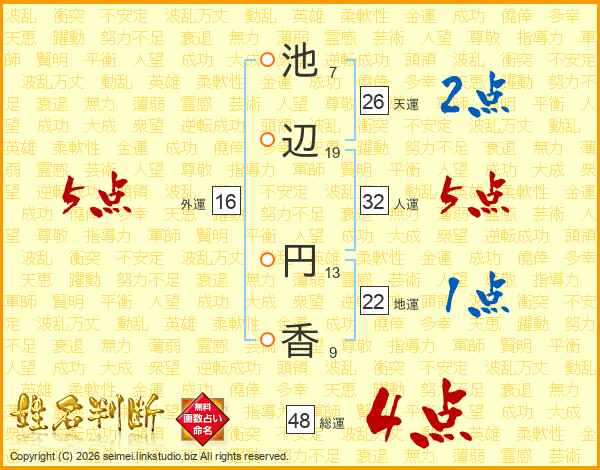 池(7画)辺(19画) 円(13画)香(9画)