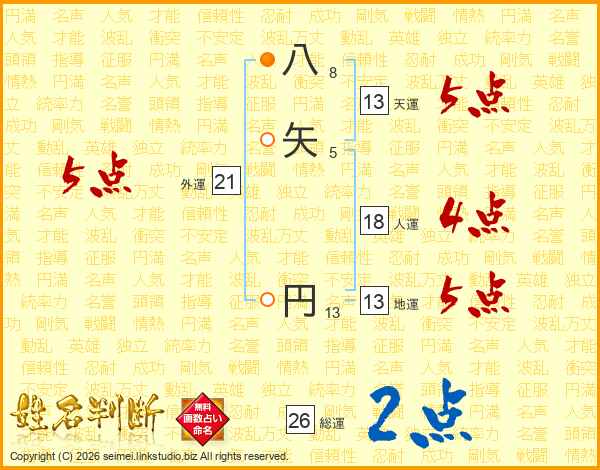 八矢円さんの天運は13画の5点!