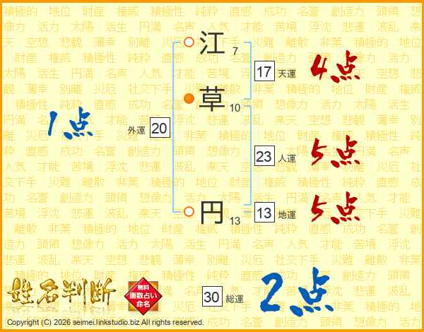 江草円さんの総運は30画の2点!