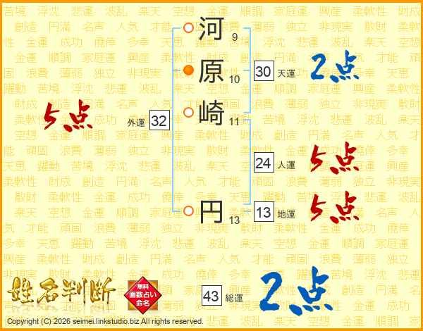 河原崎円さんの総運は43画の2点!