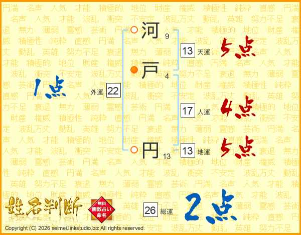 河戸円さんの総運は26画の2点!