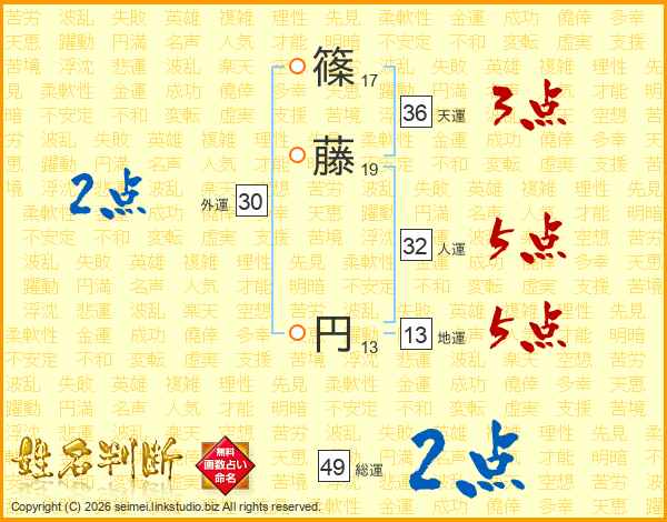 篠藤円さんの人運は32画の5点!