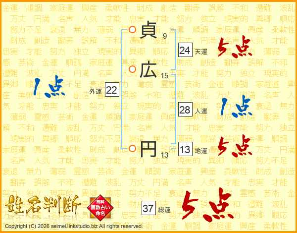 貞広円さんの総運は37画の5点!