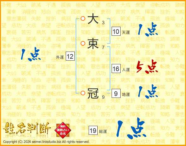 大束冠さんの総運は19画の1点!