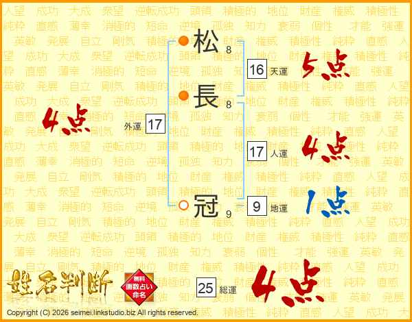 松(8画)長(8画) 冠(9画)
