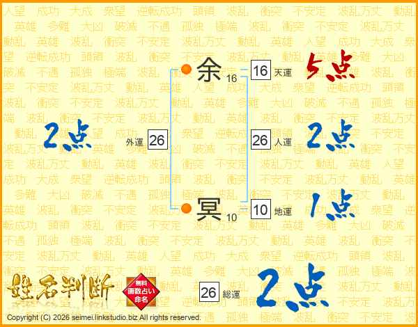 余冥さんの総運は26画の2点!