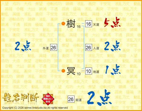 樹冥さんの総運は26画の2点!