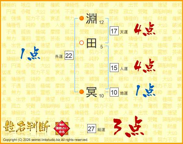 淵(12画)田(5画) 冥(10画)