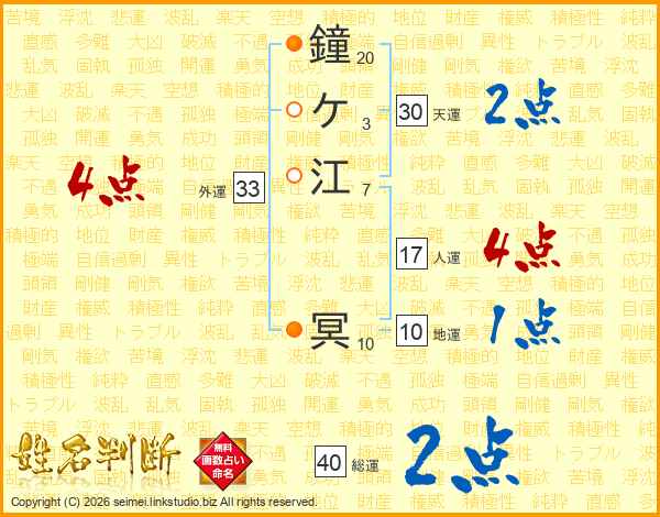 鐘(20画)ケ(3画)江(7画) 冥(10画)