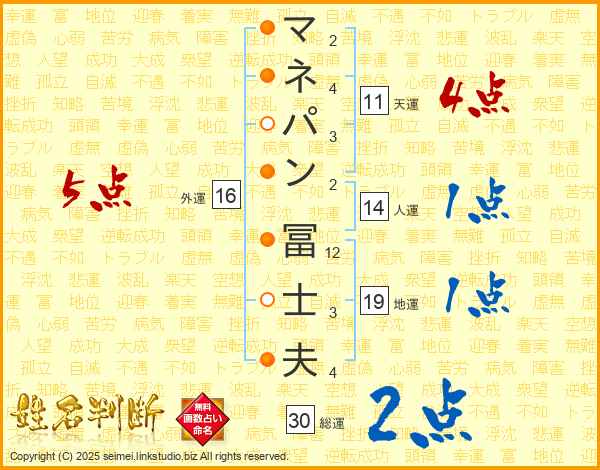マ(2画)ネ(4画)パ(3画)ン(2画) 冨(12画)士(3画)夫(4画)