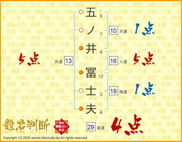 五(5画)ノ(1画)井(4画) 冨(12画)士(3画)夫(4画)