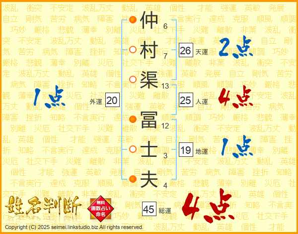 仲(6画)村(7画)渠(13画) 冨(12画)士(3画)夫(4画)