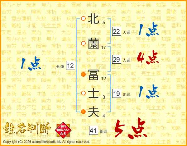 北(5画)薗(17画) 冨(12画)士(3画)夫(4画)