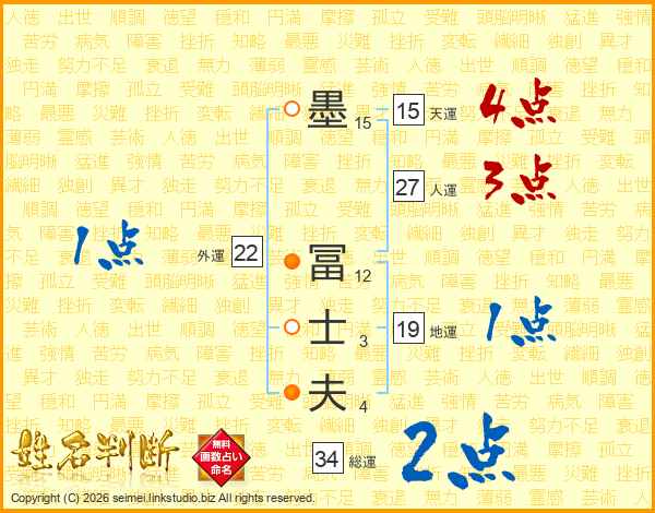 墨冨士夫さんの総運は34画の2点!