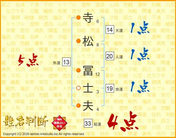 寺(6画)松(8画) 冨(12画)士(3画)夫(4画)