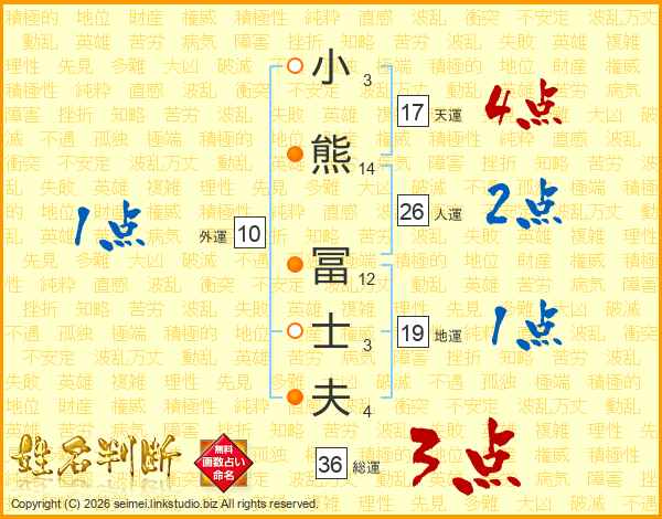 小熊冨士夫さんの総運は36画の3点!