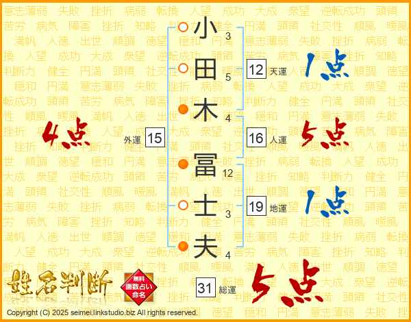 小田木冨士夫さんの総運は31画の5点!