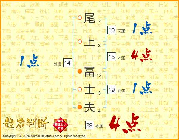 尾上冨士夫さんの総運は29画の4点!