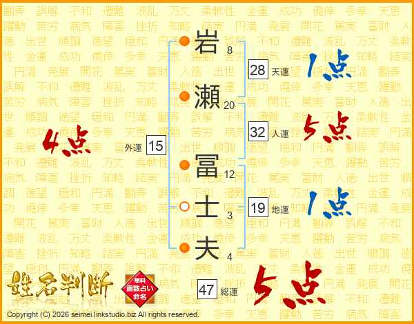 岩瀬冨士夫さんの人運は32画の5点!