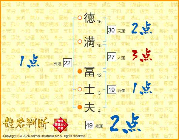 徳満冨士夫さんの人運は27画の3点!