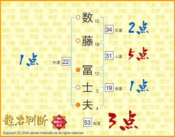 数藤冨士夫さんの天運は34画の2点!
