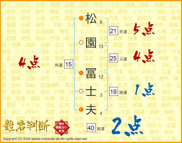 松(8画)園(13画) 冨(12画)士(3画)夫(4画)