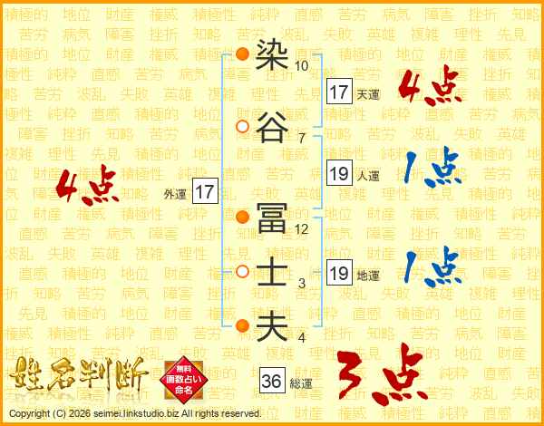 染谷冨士夫さんの外運は17画の4点!