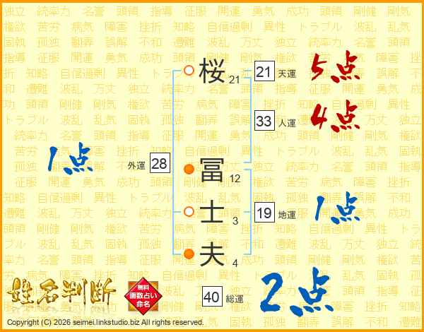 桜(21画) 冨(12画)士(3画)夫(4画)
