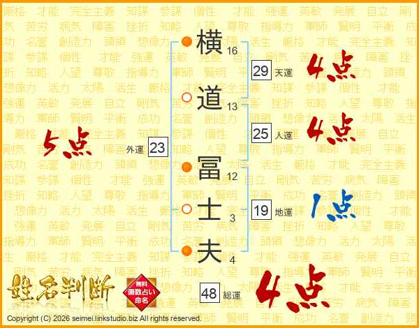 横(16画)道(13画) 冨(12画)士(3画)夫(4画)